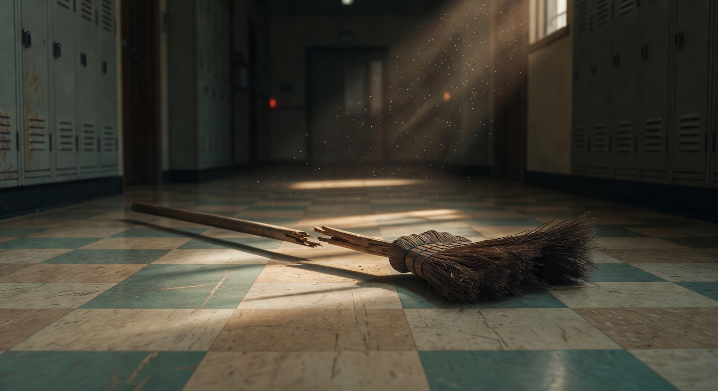 It had snapped "almost" by accident, while we were playing in the janitor’s closet. When she caught us standing frozen next to the splintered wood, we panicked. The lie came out instantly: "It was already broken when we got here."